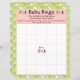 このおもしろいベビービンゴゲームであなたの赤ちゃんシャワーのゲストを楽しませる!彼らは書最初に開かれる開いた箱にベビーレジストリから項目を考え下げる必要がある。お母さんが贈り物を開くとき、ゲストは一致するアイテムをマークする。5連勝!
