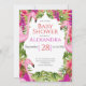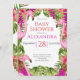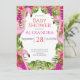 ピンクの燃える熱帯野生生物の女の子ベビーシャワー招待状かわいいピンクのフローラとサルの赤ちゃんシャワーの招待。熱帯の島/ジャングル風のベビーガールのシャワーに最適。