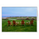 アディロンドラックの椅子は来、大西洋の海であるサウスカロライナ州キアワ島のゴルフ場の18ホールの緑に、ゴルファーを見るために並べられ縁どる。向こうには砂丘、ビーチ、大西洋海がある。後ろにゴルフカートがある。