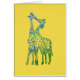 アフリカンキスをするグラフェ、ロマンチックなアートスケッチ。黄色の背景、ロマンチックな大事な行事のための青いキリンスケッチ。