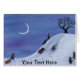 三日月の下に眠る子供たちの小さな水色とインク夕べの風景。Art絵を描-O-Matの略。