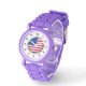 キッズアメリカ国旗の赤いグリッターストラップウォッチ 腕時計