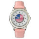 キッズアメリカ国旗ステンレススチールピンクレザーストラップ 腕時計