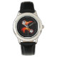 子供のクラシック革のストラップウォッチは、スポーティな燃えるサッカーボールのプリントと黒で示される。この時計を複数のスタイルから選ぶ。こカスタマイズの時計は買まに見える。ストックイメージall-free-download.com