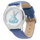 キッズクラシックレザーストラップウォッチは、かわいい小さなプリンセスプリントと青で表示。この時計を複数のスタイルから選ぶ。こカスタマイズの時計は買まに見える。ライセンスされたイメージ