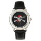 キッズクラシックブラックレザーストラップウォッチ海賊スカルプリントで表示。この時計を複数のスタイルから選ぶ。こカスタマイズの時計は買まに見える。ストックイメージ