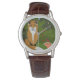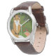 美しい赤キツネ((鳥)ショウジョウコウカンチョウとスイカ図解入りの、写真付きの付き)を備えた豪華な茶色の革のストラップウォッチは、世界中のキツネ愛好家のためのピースユニーク!