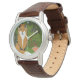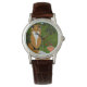 美しい赤キツネ((鳥)ショウジョウコウカンチョウとスイカ図解入りの、写真付きの付き)を備えた豪華な茶色の革のストラップウォッチは、世界中のキツネ愛好家のためのピースユニーク!