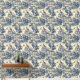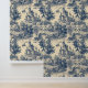 "城フランスのトワール・ド・ジュイ"ヴィンテージ壁紙は、老朽化したアイボリーホワイトの日陰に深いブルーの灰色のプリントである。今や伝統的大千年のスタイルと人気があるして新しい取り組み与えを見せる姿とクラシックの外観。
