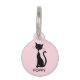 おもしろい猫の識別ラベルで、ピンクの鼻と襟が横に座って笑顔で可愛い黒猫。彼女の名前とあなたの情報でパーソナライズす連絡る。
