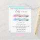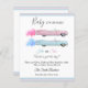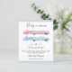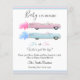 予算の赤ん坊シャワーまたはジェンダーが招待を明らかにする。白い背景に、デザインはピンクと青のキャデラック車で構成され、それぞれ青とピンクの煙が噴出エレガントしている。タイポグラフィ読文字ベビーの鍵は誰得だ?完全なイベントと詳細を前面連絡と背面に追加してパーソナライズ。