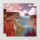 赤、深紅、ベージュ、オレンジ、タンの様々な色合いの海と夕日に通じる峡谷を描いた豪華な風景デザイン。