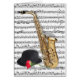 デジタルデザイン。 サクソフォーンおよび山高帽は音楽シートの背景にと上がりました設計します。 ジャズ音楽の私の愛によってインスパイア。 ジャズファンのための宝物。 あなた自身のメッセージを加えるように設計されているようにあなたのためのブランクの開いたカード。
