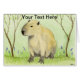 春の絵画青い花の間に座っている小さなカピバラ。自分カスタマイズの文字に変えて!