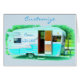 、あらゆる色の背景のレトロのヴィンテージ旅行トレーラーのデザインによってあなたの名前への変更個人化して下さい