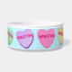 このバレンタインデーは、犬や猫が月を通して、あるいは一年を通して犬や猫をどれだけ愛しているかを示す。パステルピンク、グリーン、パープル、イエロー、ブルーの円に入った懐かしいキャンディのハートこのペットボウルと各ハートは犬の名前と一緒にすカスタマイズ。あなたのペットパーソナライズされたにとってとても可愛いデザイン。淡青色の背景。
