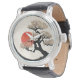 キャンバスに描かれた円草丸と盆栽 腕時計