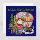 キャンプすることを愛する女の子はキャンプの休暇、くま、フクロウ、キャンピングカー、木およびキャンプの火の金髪の女の子を特色にするこのかわいいアウトドアのデザインを愛します!