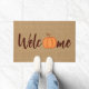 キュートカボチャ歓迎ワードアートフェイクオンジュートテキスタイル ドアマット
