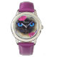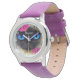 キュートキャットシャム顔追加ネームパープルイラストレーション 腕時計