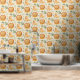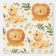 ベビー子供部屋や幼児の寝室に最適な壁紙で、国王と王妃の2頭のライオンを繰り返しパターンで含むイメージとボホスタイルのを備え葉る。主な色は金ゴールドブラウンとセージ緑で、クリームの背景に置かれる。カワイイ!