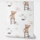 キュートテディベアリーディングスターズムーンホワイト子供部屋 壁紙