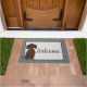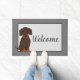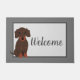 グレーの背景に「ようこそ」を中心とした文字を持つ可愛いダシュント縁どンパピー