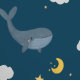キュートナイトタイムスカイクラウドムーンホエールキッズ子供部屋 壁紙