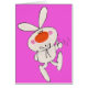 このヴィンテージ漫画は幸せで口笛を吹くバニーの漫画である。彼は指をパチンと鳴らして歩いている。ウサギはピンクの頬と大きなオレンジ色の鼻で白い。背景は明るいピンク。このデザインと一致する製品については、私のストアのArt by MARを参照する。
