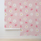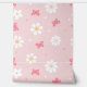淡いピンクの背景にピンクの蝶とデイジーの花を描いたかわいい壁紙。女の子の部屋、子供部屋、遊び部屋に最適 – ケイト・エデン・アート