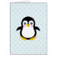 ライトブルーすごいの水玉模様背景を持つ愛らしいペンギンデザイン。