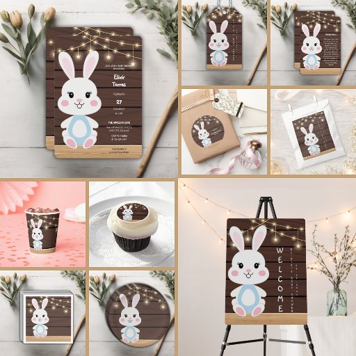 キュート素朴ホワイトバニーベビーシャワー招待状 招待状