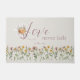 キリスト教信仰バイブル聖句ワイルドフラワーデザイン第1コリントからの励ましの詩。13:8、愛は決して失敗しない。ピンク、緑、黄色、白の柔らかいニュートラルシェードで、あなたの家の入り口に美しい追加。愛の一部は決してワイルドフラワーのコレクションに失敗しない。