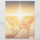 教会のフェローシップ名のビジネスのレターヘッドのための天国の風光明媚な描写の牧師、司祭、ディーコン、その他の聖職者。美しいパステルオレンジ色の空、ふわふわの雲、そして太陽光の光で設計されている。#Christian #Catholic