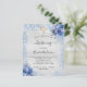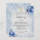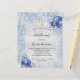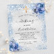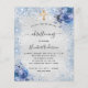 Aモダン、バエレガントプテスマ祝、男の赤ちゃんだ。銀フェイク色のバック飾グランドと青いフェイクグリッターと花模様。黄金の十字架。名前とパーティー・詳細のパーソナライズおよび追加黒い文字。