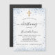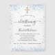 Aモダン、バエレガントプテスマ祝、男の赤ちゃんだ。青い飾グリッターの輝きと金のクロスと白い背景。名前とパーティー・詳細のパーソナライズおよび追加黒い文字。