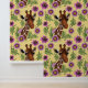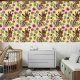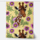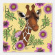 ピンクと明るい赤紫色の花と黄色の背景にキュートなキリンのポートレート