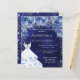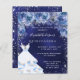 15モダン歳のスタイリッシュ誕生日パーティー、キンセアニラへの魅力的な招待。銀のグリッターの輝フェイクきを持つ海軍の背景、ドレスと青いバラ、花模様。青い背景色は不均一である。名前は手書文字のスタイルスモダンクリプト付き。カスタマイズしてパーティー詳細を追加する。