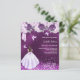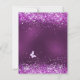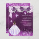 キンセエレガントーニェラ。紫の凹凸色の背景。飾紙吹雪と、バレリーナつま先の靴、蝶、バラとドレスの女の子。名前、年齢/文字、およびパーティー詳細をカスタマイズして追加する。名前は手書入力のスタイルスクリプトで指定する。1枚= 1枚の招待状を印刷したエッジからエッジ