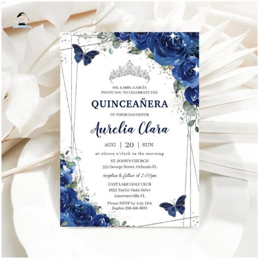 キンセアニラ誕生日王室のブルーフローラプリンセス 招待状