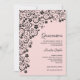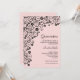 ピンクの背景にエレガント黒い渦巻きレースのようと花と葉デザインのが入った淡い色のこのキンチェニェラのバースデーパーティ招待状は、お姫さまの15歳の誕生日に最適だ。背景色をパーティーテーマに合わせて変更。私たちの店のマッチングアイテム。