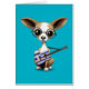 ギリシャの旗のギターを演奏しているチワワの小犬