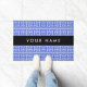 ギリシャの蛇行鍵Hブルー、お名前、パーソナライズ ドアマット