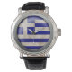 このグラフィックユニークは、円形の金属フレームの内側に設定されたギリシャの旗を特徴とする。ギリシャ国旗は、デザインの上部に見える光の反射を持つガラスの一部の下にあるように見える。このフラグは、ステンレス製のフレームの滑らかな仕上がりをコントラストする粗いテクスチャが追加されている。この円形の旗のパターンはスタイリッシュ、あなたの愛国心を示す方法である。