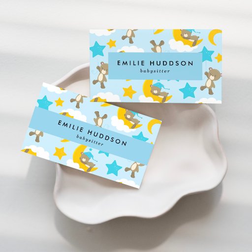 可愛い、おもしろいと可愛らしい名刺テディベア、月、雲と星。そしてモダントレンディーデザインは、子供に最適で気に気に、日、ベビシッター、ナニーとベビシッター機関に最適。