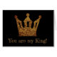 赤い背景はがき上のゴールデンクラウン。エレガント大事な行事用違うはがき独自の文字を追加あなたは私のキング – ロマンチックな葉書である。