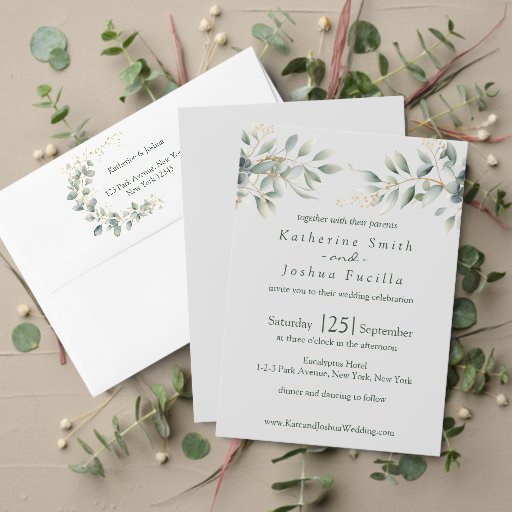 クラシックエレガントユーカリ結婚式 案内ポストカード