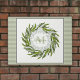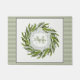 クラシックスタイルエレガントリースモノグラムと名パーソナライズされた前の緑の。セージ緑ストライプの背景完璧結婚な贈り物か引っ越し祝いパーティー。セージ、クリーム、ダークグリーンのカラーパレット。