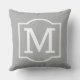 クラシックススタイリッシュクエア屋外アクセントピローは、灰色の背景色と白い色のシンプル装飾枠を持つモノグラムのイニシャルを特徴とする。外カスタマイズの装飾に合わせる背景。