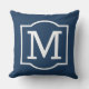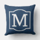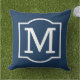クラシックススタイリッシュクエア屋外アクセントピローはモノグラムのイニシャルを特徴としシンプルて、ネイビーブルーの背景色と白い色の装飾フレーム。外カスタマイズの装飾に合わせる背景。